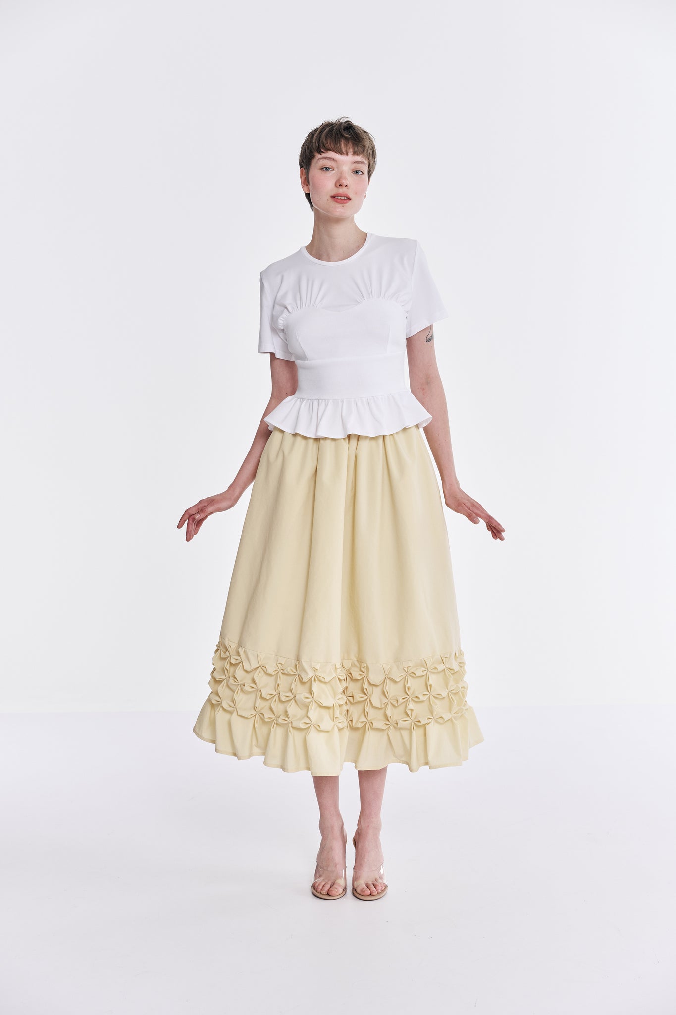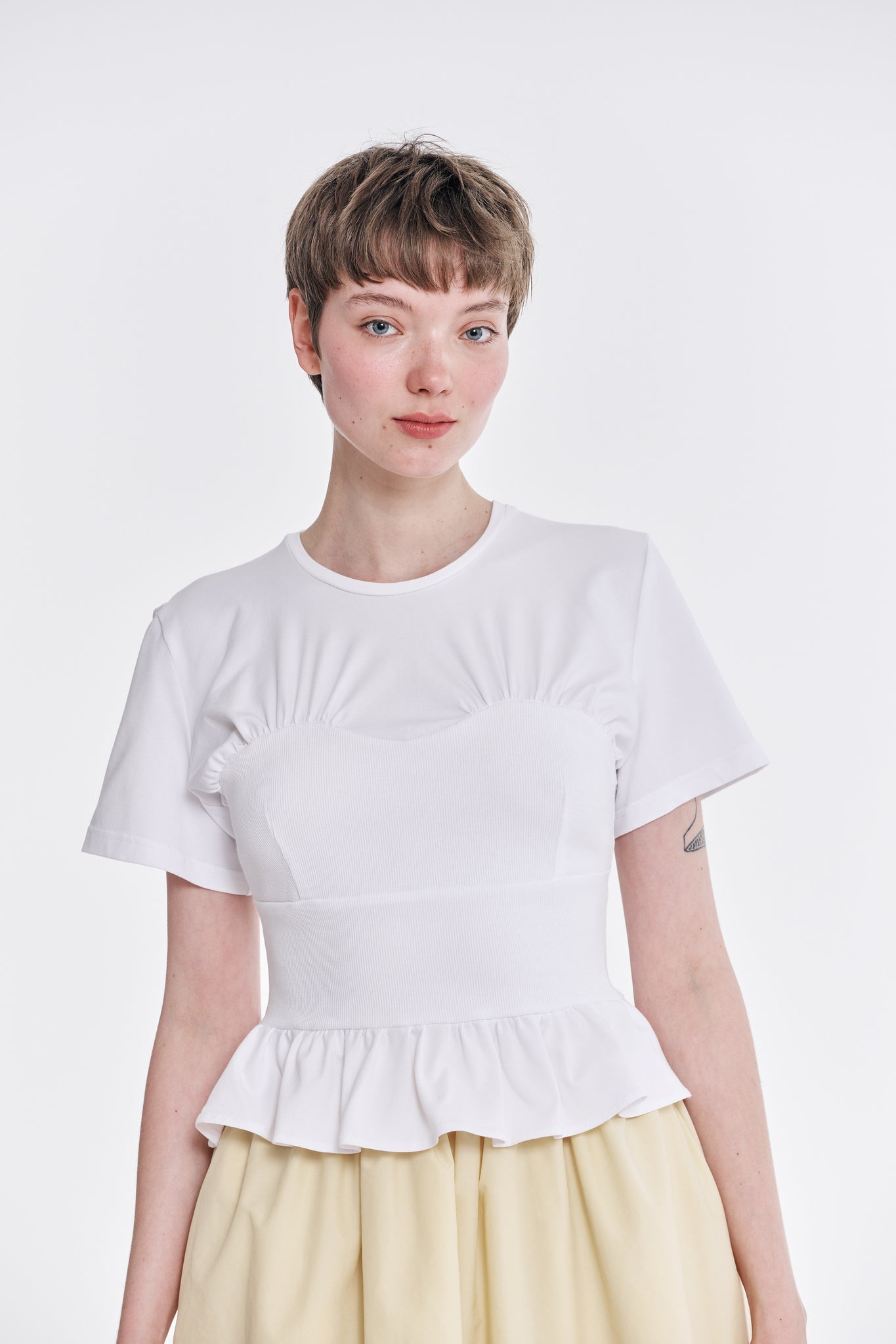 Combination of T-Shirt and bustier in one top. Feminine silhouette for everyday wear.